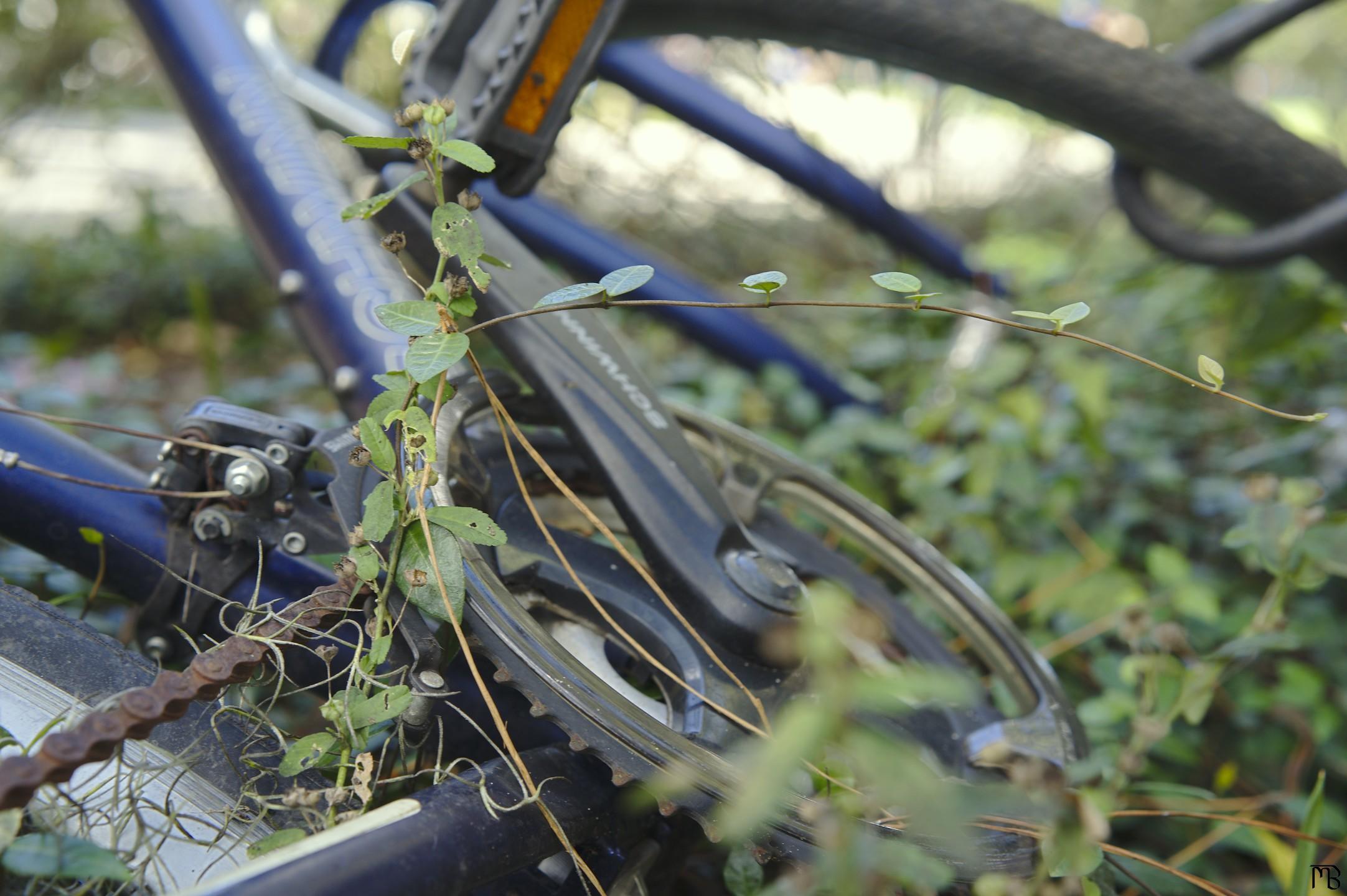 Plant growing through bike